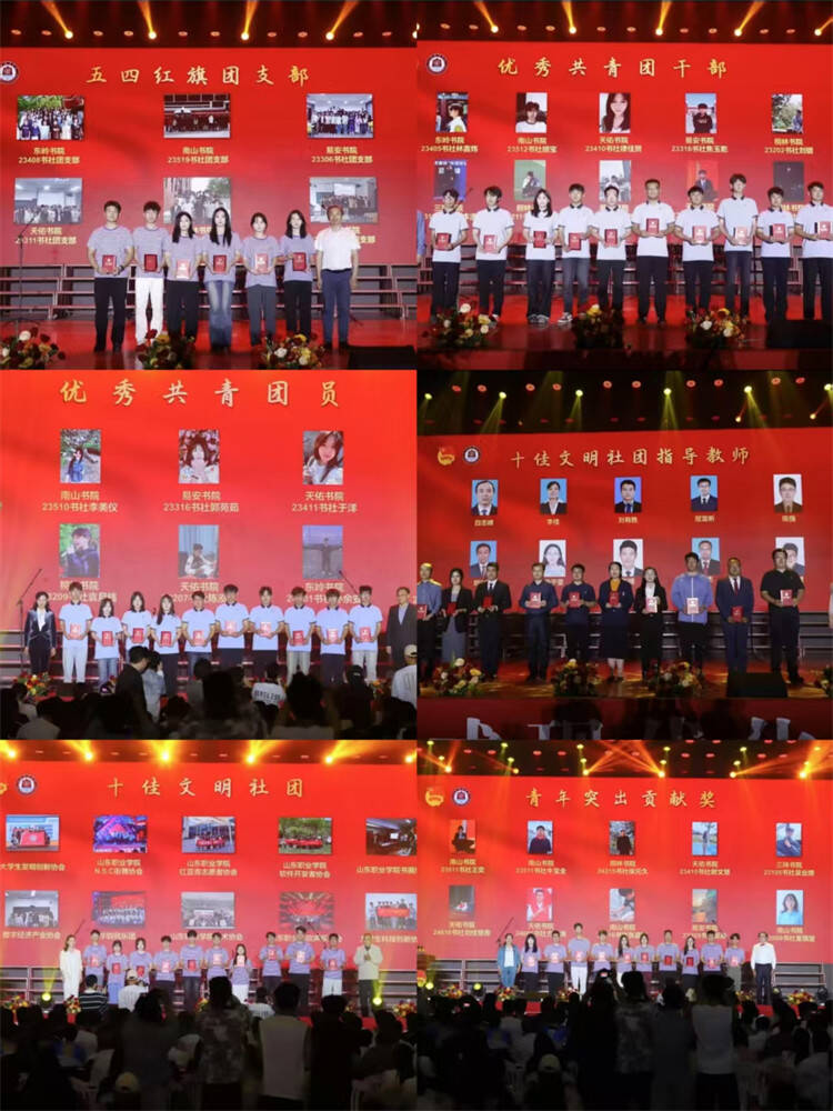 大会授予王奕等10人2024年度青年突出贡献奖,授予大学生发明创新协会等10个集体2024年度十佳文明社团荣誉称号,授予白志峰等10人2024年度十佳社团指导教师荣誉称号,授予周韵奇等人2024年度优秀共青团员荣誉称号,授予李昊潼等人2024年度优秀团学干部荣誉称号,授予三味书院23106书社团支部等6个团支部2024年度“五四”红旗团支部荣誉称号,授予易安书院团总支2024年度“五四”红旗团总支荣誉称号。