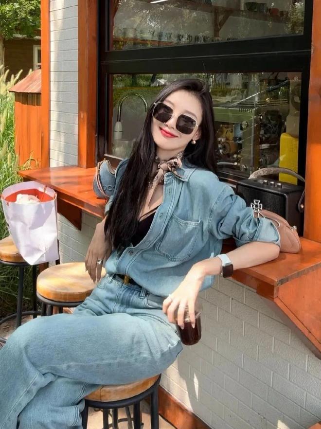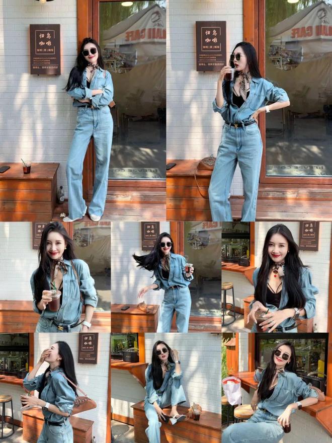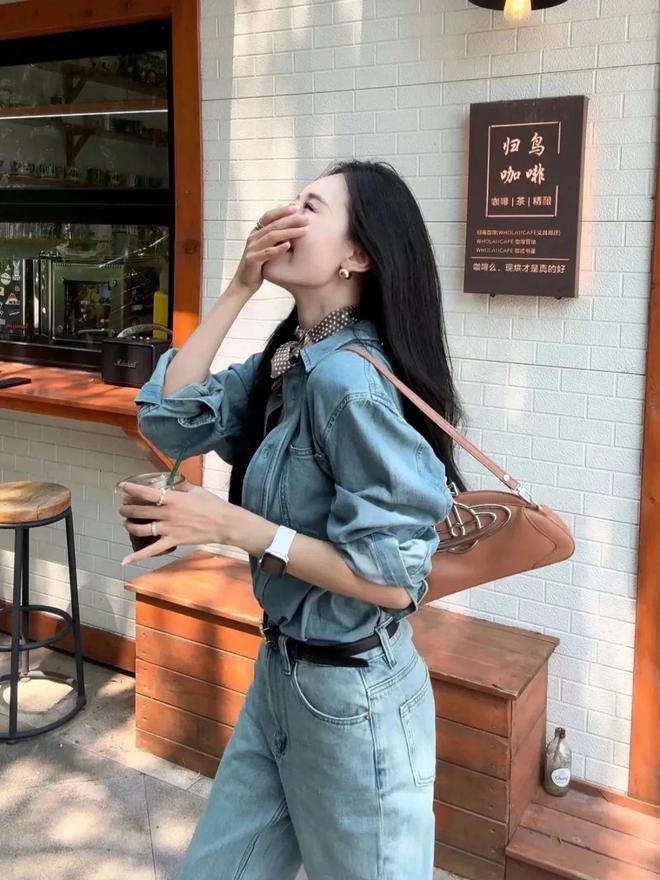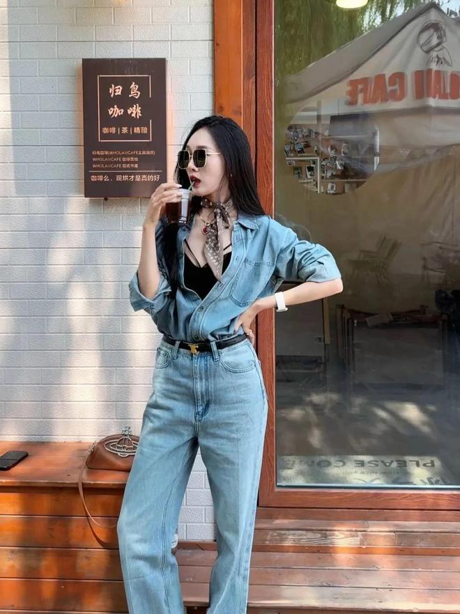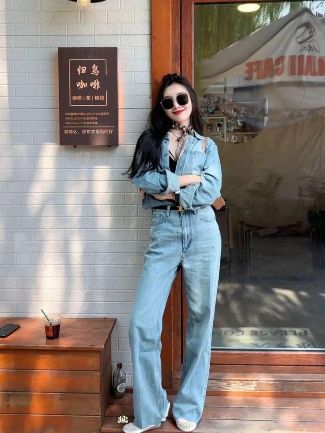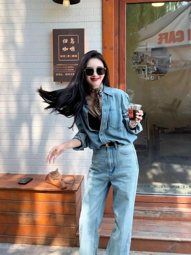 双脚分开站立,重心稳定,营造出大气姿态。双臂交叉于胸前,放松又自然,凸显自信气场,同时巧妙修饰身形。整体姿势与休闲牛仔穿搭适配,传递出一种轻松自在又时髦的氛围感。